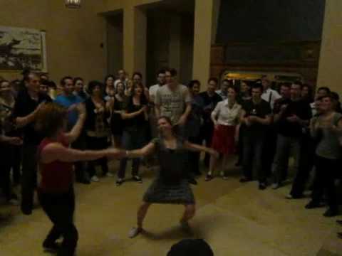 This was the first time I ever saw a crowd stop a contest from ending by chanting “ALL SKATE! ALL SKATE! ALL SKATE!” Then the contestants delivered again by swinging the s#!t out of that last song, a serving of "Lafayette" from the Kansas City Soundtrack. That song has a great brooding intro, followed by a thumping rhythm section that leads into a musical assault on the senses. That cacophony of sound matched the hard swinging-outs and the bodies flying all over the floor. Sarah and Michael even successfully pulled off their aerial to bring the crowd to a near riot. At the end, those twelve couples were rewarded with a sustained and well deserved standing ovation by Lindy Hoppers and Westies alike.