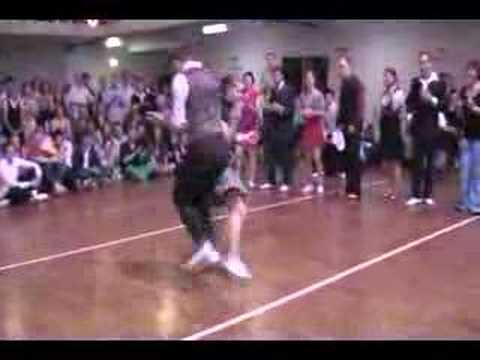 ULHS 2007 was populated with just about everybody in the world who does the lindy hop and had something they wanted to show off. I’m sad to say that I had to miss that Sunday, when Skye and Frida performed their awesome “24 robbers” routine. This piece was neither blazingly fast, nor chock-full of air steps, but rather brimming with creative uses of jazz movement contextualized in lindy hop and Charleston moves. I love the leitmotif of the heel toe scooches, in fact Andrew and I used the idea of having a recurring move for our Hoedown (heel clicks), inspired by this routine. We really wanted to quote Skye and Frida for everything they’ve done for the lindy hop community, and chose this routine because it is probably their most recognizable clip, while embodying simple yet difficult and creative choreography executed in a relaxed and graceful way.