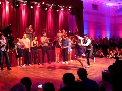 There's been a lot of interesting chatter about the Lone Star Championships and Dax & Sarah's television appearance. I've been trying to put some thoughts together since Lindy Focus about some of the issues that these two recent events bring up, but I don't have anything coherent yet. That's mostly acombination of me being too busy and people saying thoughtful stuff. Until I can get something together, check out a few video highlights from The Snowball over in Stockholm Sweden which took place over the New Year holiday at the same time as Lindy Focus. My favorite has to be this bluesy hip hop improvisation done by Joyss with the Gordon Webster Septet.